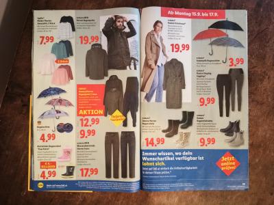 Hell leuchten im heurigen Discounter-Herbst nur die Regenschirme. Nur die Regenschirme bringen Farbe in die Herbstmode der Männer. Der Hofer hat sich diesen Trend angeschlossen. In so einem Biotop muss du schon leben wollen. Oder keine andere Wahl haben. Genau. Wer hat das jetzt gesagt? Man hat immer eine Wahl. Man hat immer eine Wahl. Der ist gut, den solltest du aufschreiben.